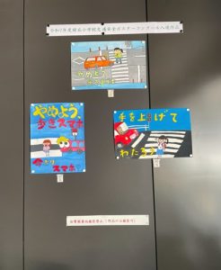 令和7年10月9日別府市実相寺公民館において、緑丘分会主催の令和7年度緑丘小学校6年生による交通安全ポスターコンクールの審査会があり、3作品が入選しました。子供のときから交通安全について考えることで将来の安全運転ドライバーへとつながっていくものと思います。入選作品は、10月14日から同月20日までの間、別府警察署玄関風除室壁面(玄関入って右側)に掲示しました。