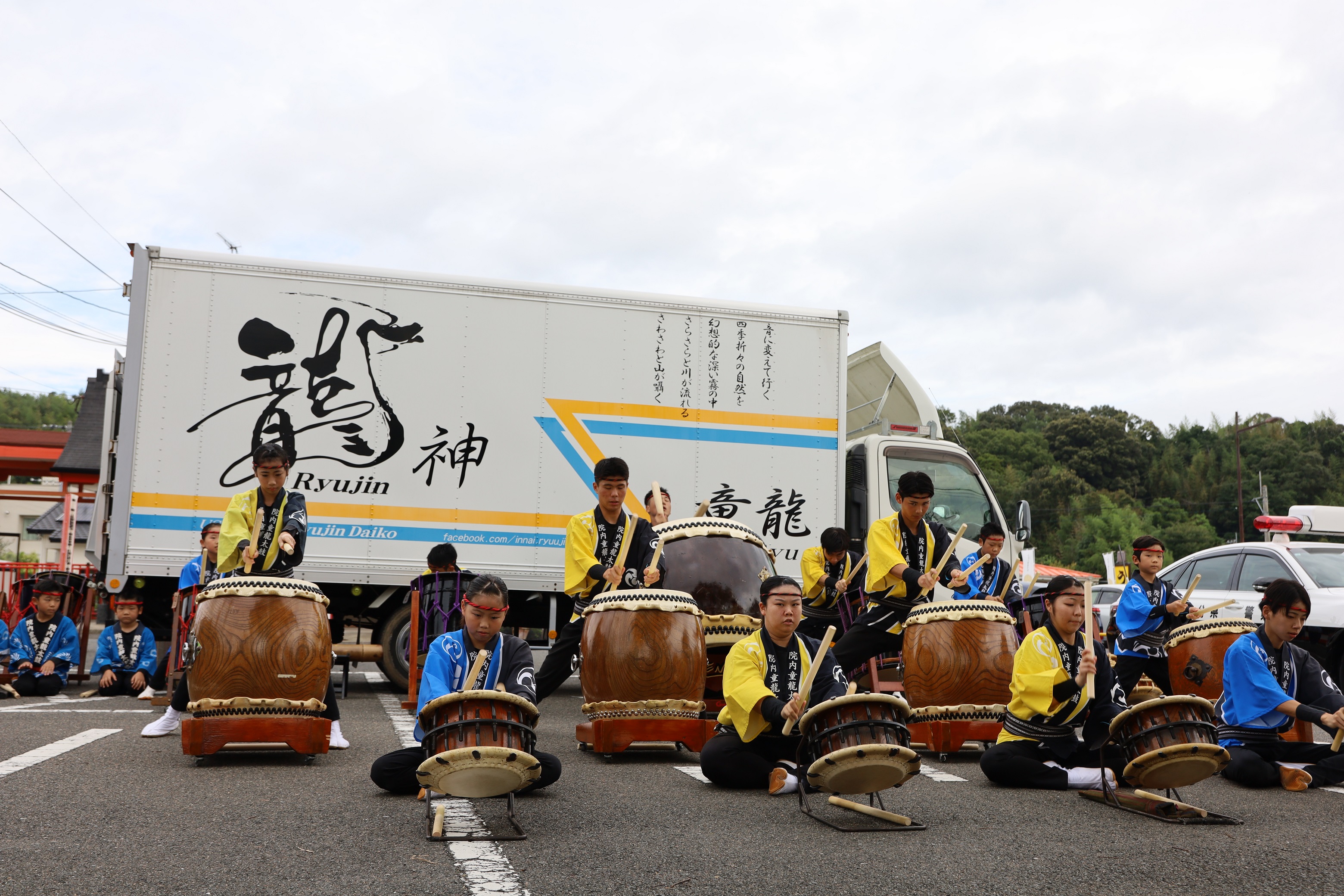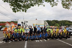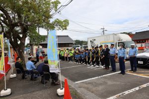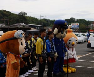 童龍太鼓のみなさんと一緒に交通安全宣言をしてもらいました。