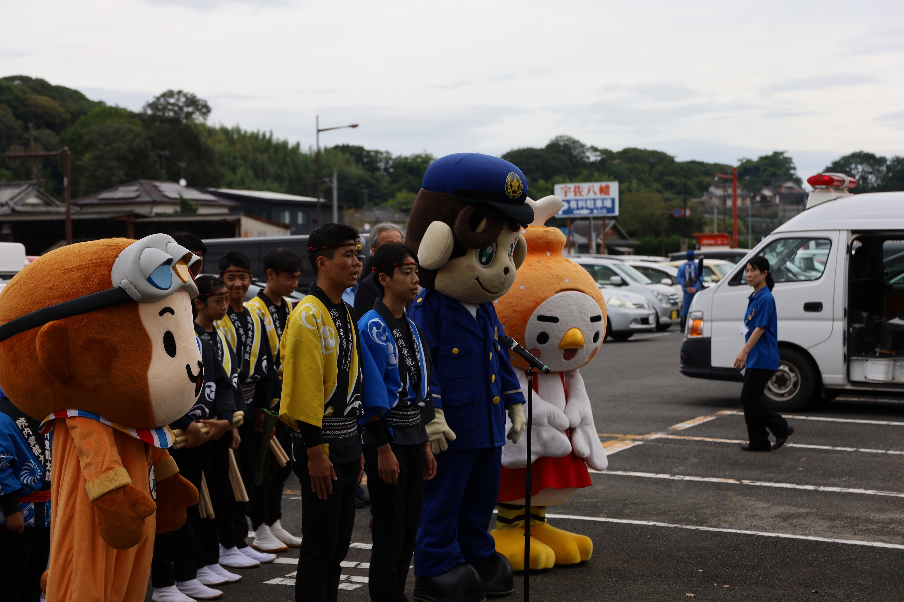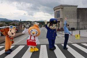 大分県交通安全協会公式キャラクター「さるーる」が遊びに来てくれて、