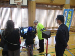 当日は警察官による交通安全講話、歩行シミュレーターのほか、当協会では自転車シミュレーターを使用した安全運転体験を実施し、参加者に自転車の正しい乗り方や危険予測の大切さを呼びかけました。子どもから高齢者まで多くの参加者が交通安全について楽しく学びました。