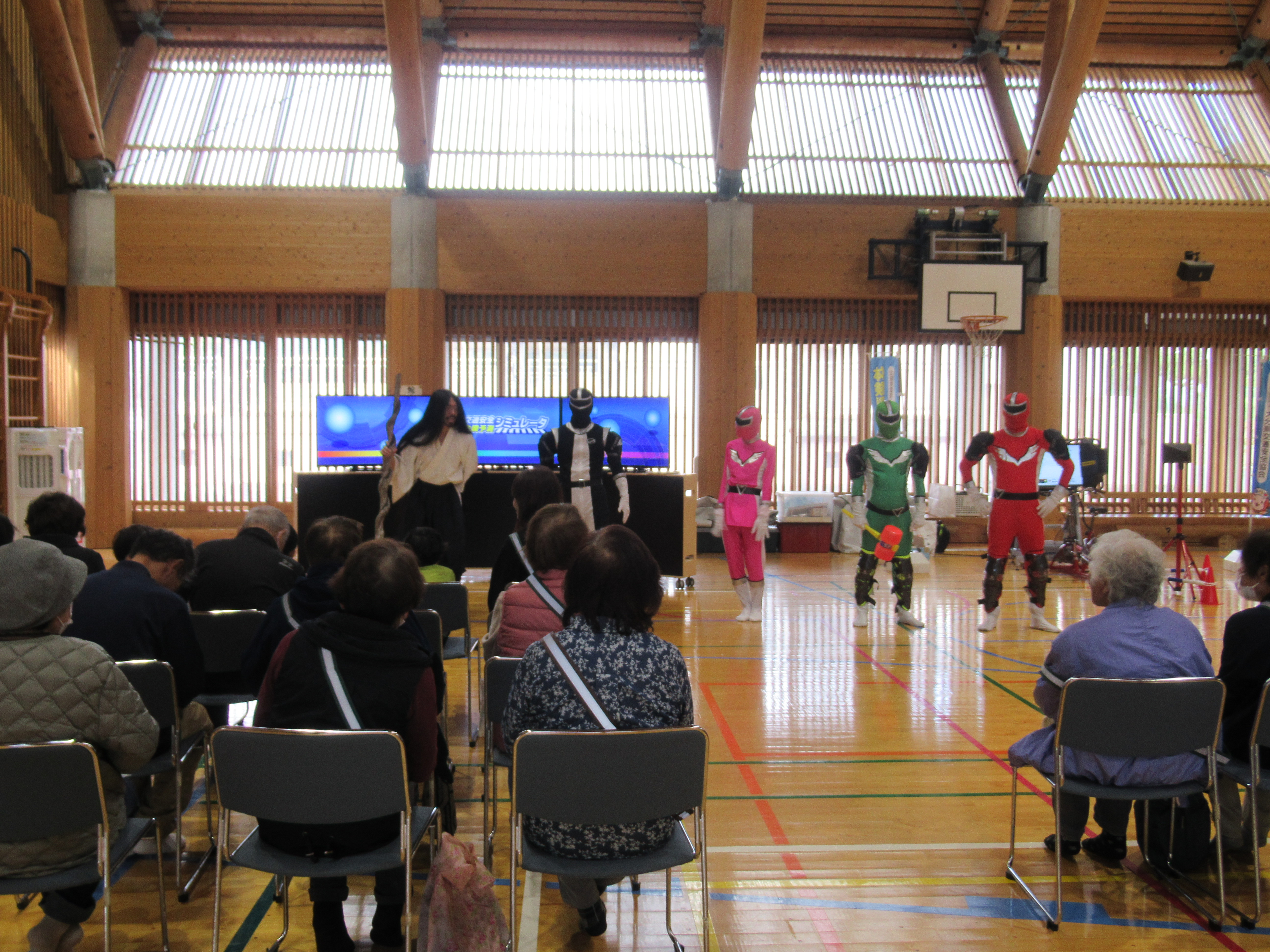 またイベントの中盤には、山国戦隊 槻木レンジャー登場し信号の正しい渡り方や、ながらスマホの危険、夜間のライト点灯の大切さなどを、わかりやすく呼びかけました。