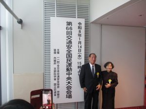 第66回交通安全国民運動中央大会について Posted on 2026年1月16日 in お知らせ 先日、1月14日(水)に東京都文京シビックホールにて、第66回交通安全国民運動中央大会が行われました。 大分県からは、緑十字金章2名、緑十字銀章6名の合計8名の方が受賞されました。 緑十字金章 交通安全功労者 山中 利夫様 配偶者 圭子様 緑十字銀章 交通安全功労者 中田 ひろみ様 当日は2名の受賞者が出席されました。